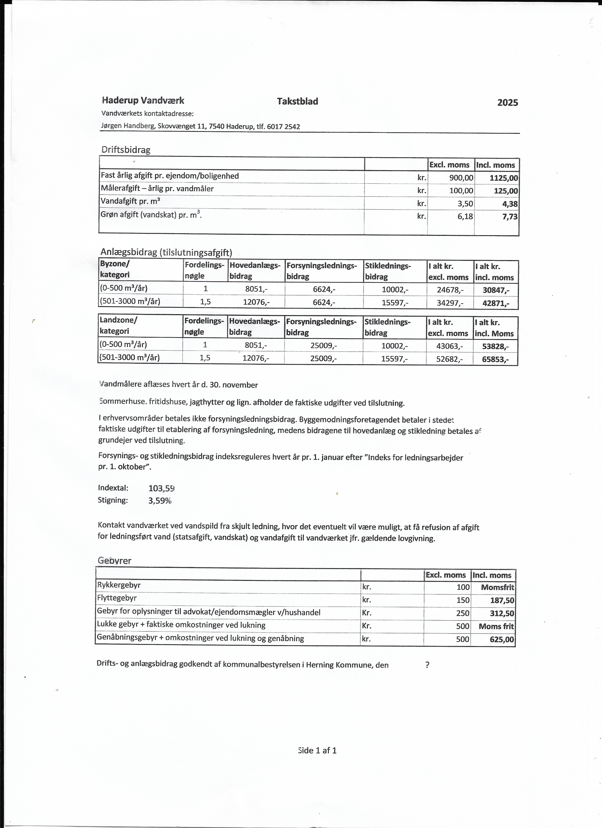 Haderup Vand Takstblad 2025